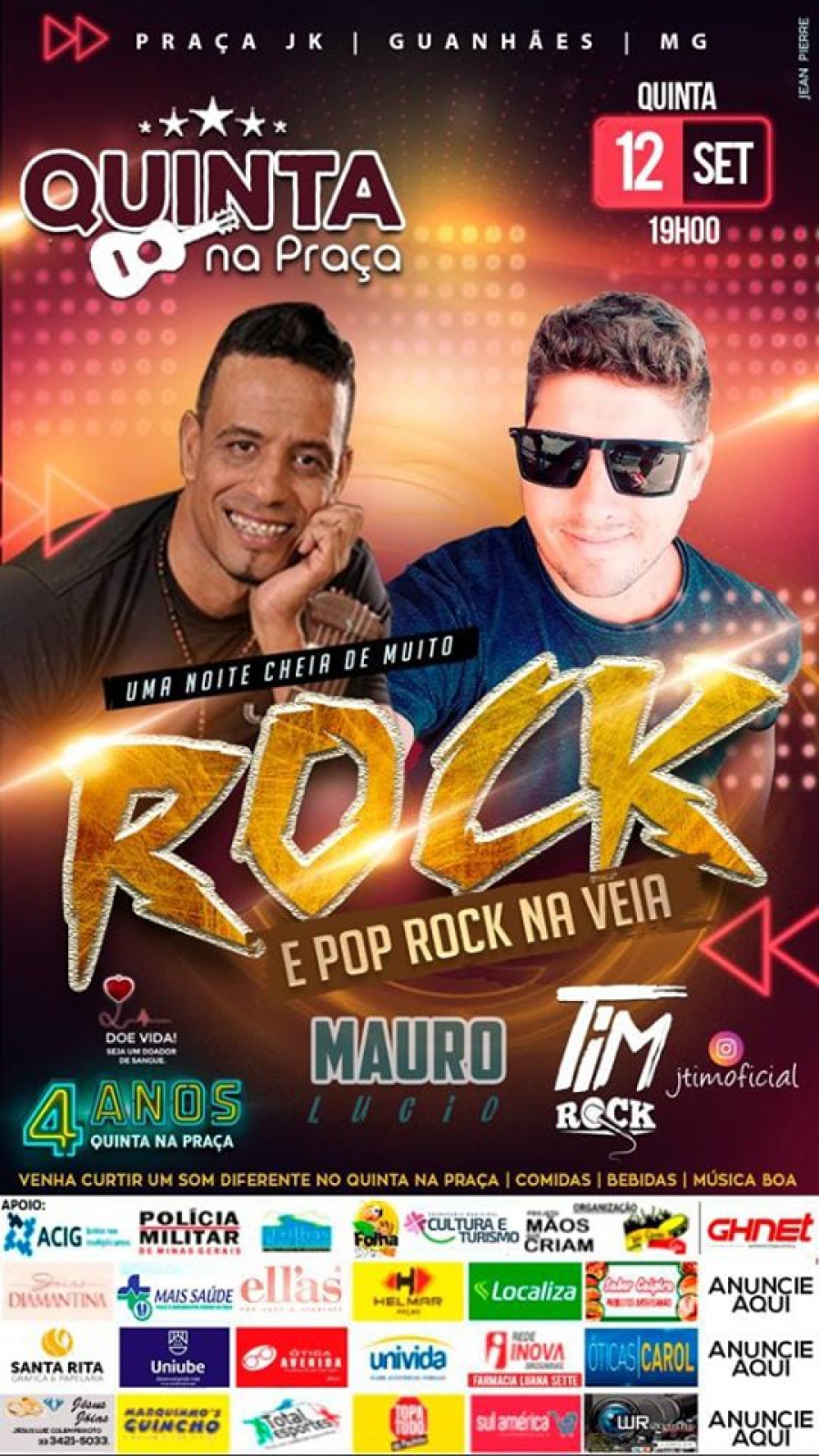 A programação de hoje promete. A noite será animada com muito rock e pop rock na veia, ao som de Mauro Lúcio e TIM Rock. Na Praça você também pode saborear deliciosas comidas, bebidas e cervejinha gelada.