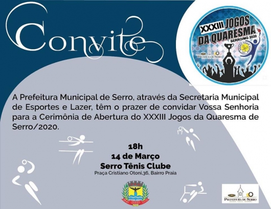 A nova data para a 33ª edição dos Jogos da Quaresma de Serro foi divulgada na manhã desta quinta-feira (12). O evento esportivo estava programado para começar no último sábado (07), mas com as chuvas que atingiram Serro e cidades da região, os jogos e a abertura foram adiadas.