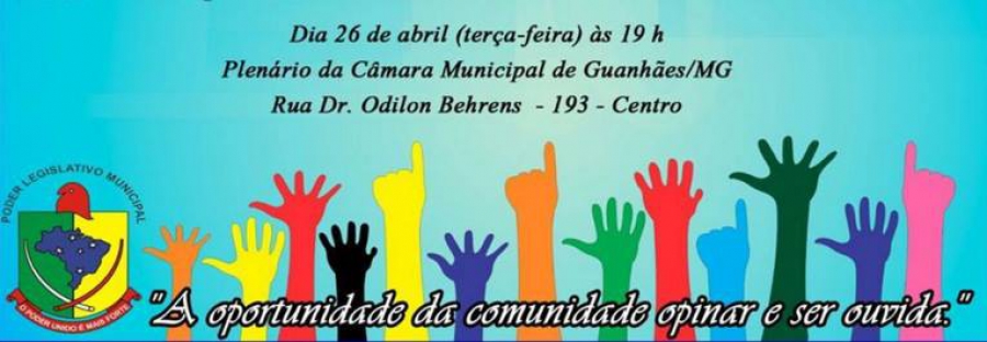 Nesta terça (26), será realizada no Plenário da Câmara Municipal de Guanhães, a Audiência Pública da Saúde, onde serão apresentados um relatório de visitas das unidades de saúde do Município de Guanhães e a prestação de contas da Secretaria Municipal de Saúde.