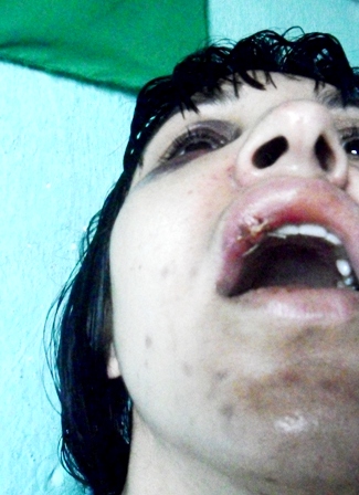”Rejane relembra o ocorrido e chora; depois se recompõe, se dirige novamente à reportagem e continua: “A resposta dele à minha reclamação foi a seguinte: cala a boca vagabunda!!! As vagabundas saem de Guanhães para caçarem confusão aqui em Virginópolis. Depois, me deu quatro socos no rosto; um na testa, dois nas proximidades do olho direito e um na boca. Com medo de outra investida do policial, me calei e fui conduzida a uma sala de reunião do quartel da PM, onde fiquei algemada até ser conduzida ao hospital de Virginópolis para atendimento médico onde uma médica me anestesiou e costurou o meu lábio.”